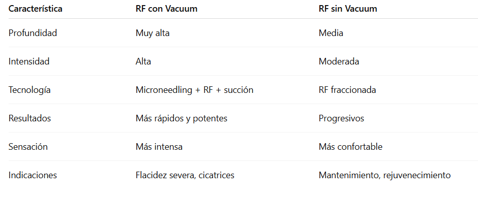 🔬 Diferencias entre Radiofrecuencia Fraccionada con Vacuum vs sin Vacuum